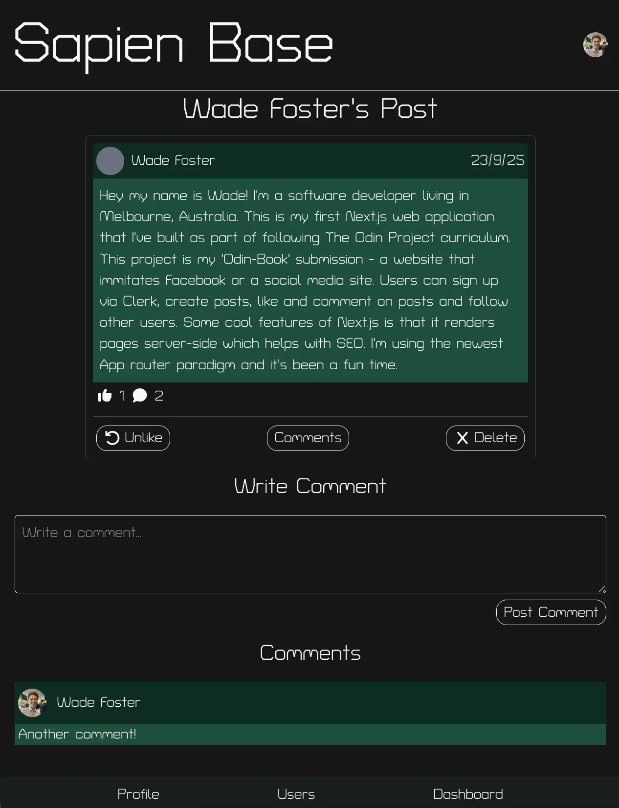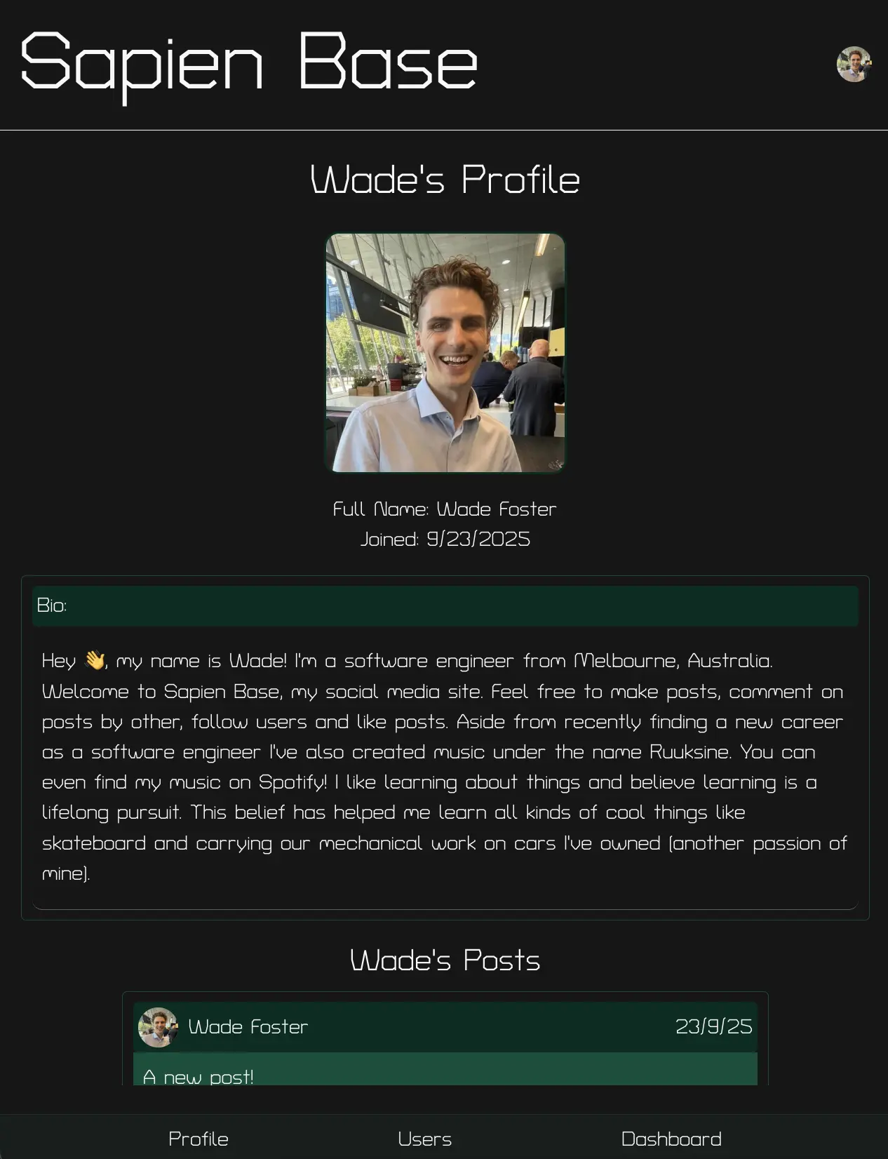 The objective of Sapien-Base was to create a social-media platform that covered the core functionality of social-media.